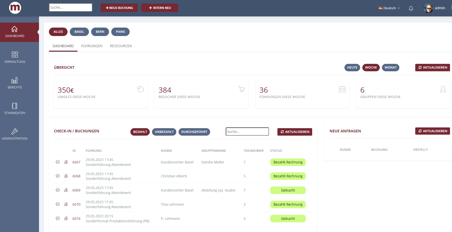 Die MICE-Pilot App ermöglicht Ihnen und Ihren Mitarbeitenden das Einchecken Ihrer Gäste mit Einblick in Buchungsdetails, eine aktuelle Übersicht zu den Veranstaltungen der Woche inkl. der Auslastung der einzelnen Events und einen Zugang für Ihre Guides mit einer Übersicht der ihnen zugeschlüsselten Touren.