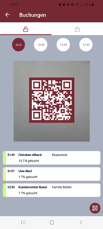 Buchungen werden gebündelt je Veranstaltung aufgelistet und können anhand eines QR-Codes oder anhand der Buchungsnummer aufgerufen und anschliessend eingecheckt werden. So erfassen Sie wer tatsächlich an den Werkbesichtigung oder anderen Veranstaltungen teilgenommen hat.